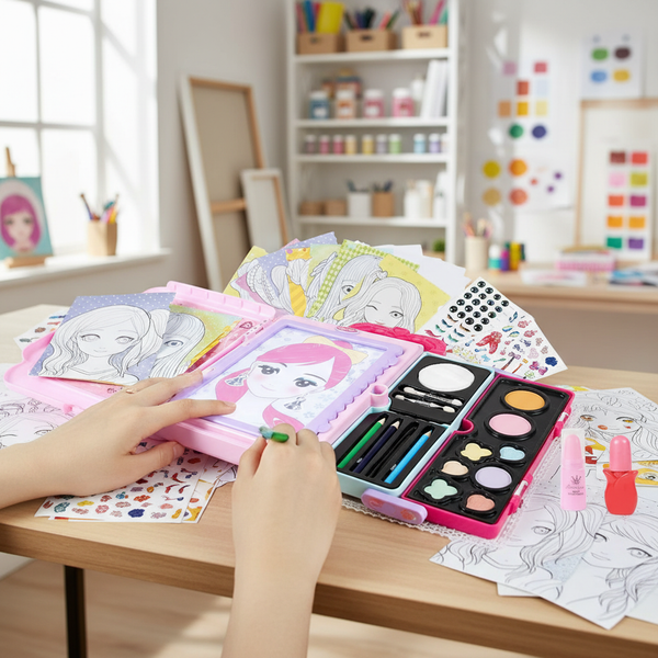 GlamSketch™ förvandlar teckningar till färgstarka konstverk med säker, vattenbaserad makeup som är enkel att tvätta bort och lätt att ta med.