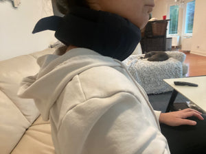 Korrigerar nackens position och minskar framåtlutad hållning. Använd dagtid för bättre ergonomi, mindre spänningshuvudvärk och förbättrad hållning över tid.