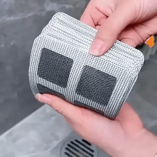 Designad för att passa de flesta duschar, handfat och golvavlopp. Det flexibla nÀtet anpassar sig efter ytor och stannar pÄ plats med sin starka klisterkant.