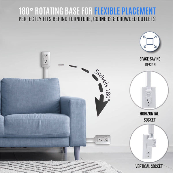 VoltReach⹠justeras omedelbart i lÀngd och vinkel, vilket gör att du nÄr uttag bakom soffor och sÀngar utan anstrÀngning. Glöm att behöva flytta tunga möbler varje gÄng du behöver en extra strömkÀlla.